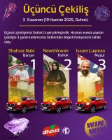 Üçüncü çekilişimizi Duhok’ta gerçekleştirdik. Haziran ayında yapılan çekilişte 3 şanslı katılımcımız birbirinden değerli hediyelerin sahibi oldu. Kazananlarımız: Shahraz Nabi Ahmad - Barzan/Erbil, Nesrin Abbas Ahmed – Duhok, Essam Lokman Adel – Musul (ödülünü Duhok’ta teslim aldı) Çekiliş videosu sosyal medya hesaplarımızda yayınlandı.